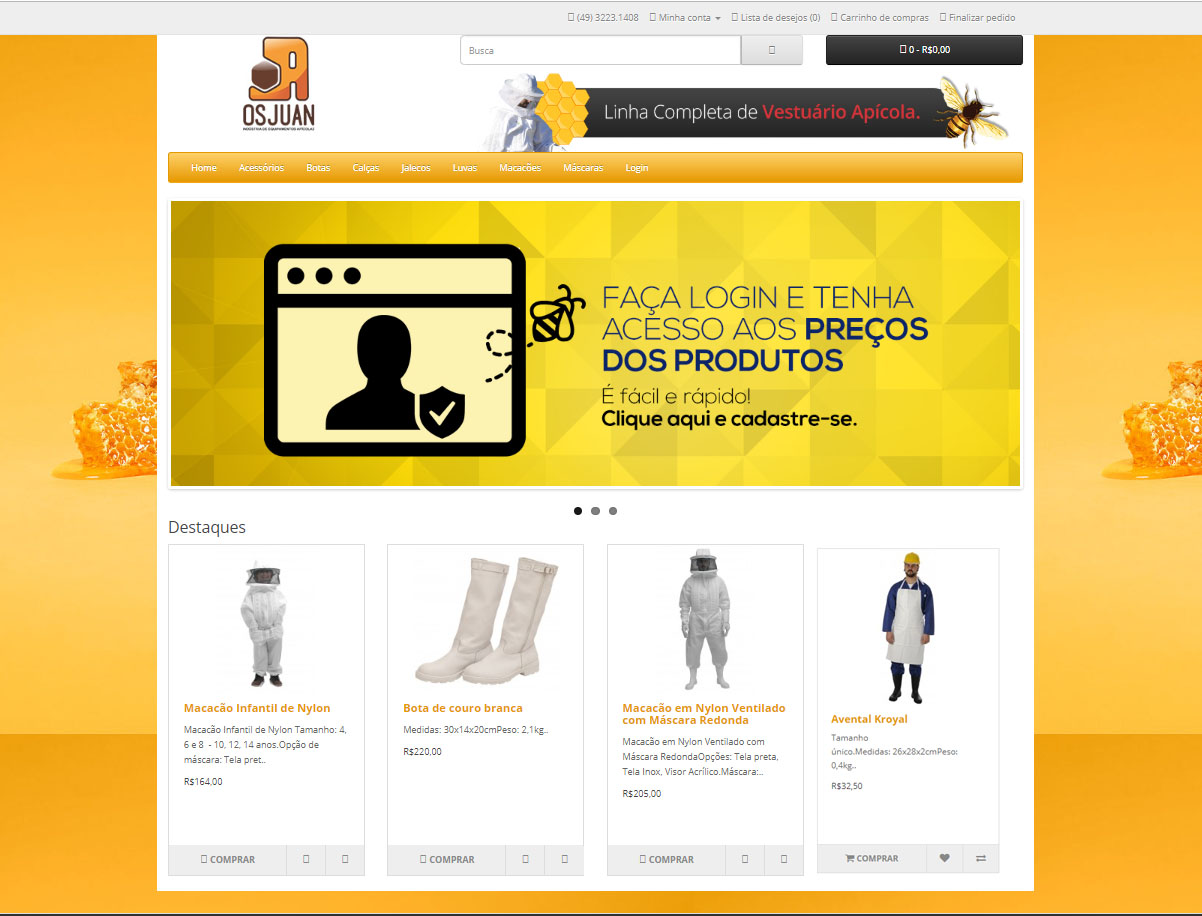 Website E-commerce Cliente: Osjuan Vestuário Apícola